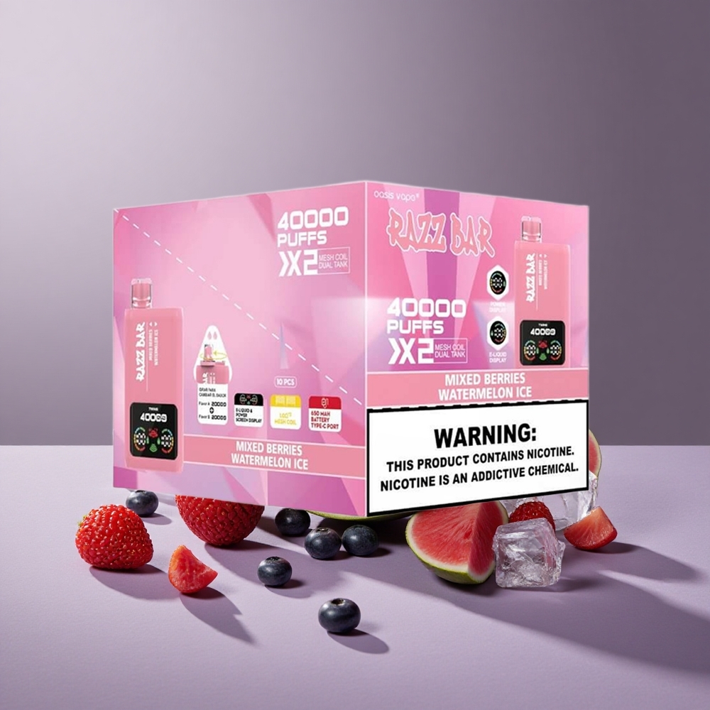 Razz Bar 40000 Puffs Wegwerp Vape Gemengde Bessen_Watermeloen Ijs met Power Screen Display en 650 Mah Batterij Type-C Poort